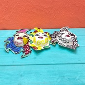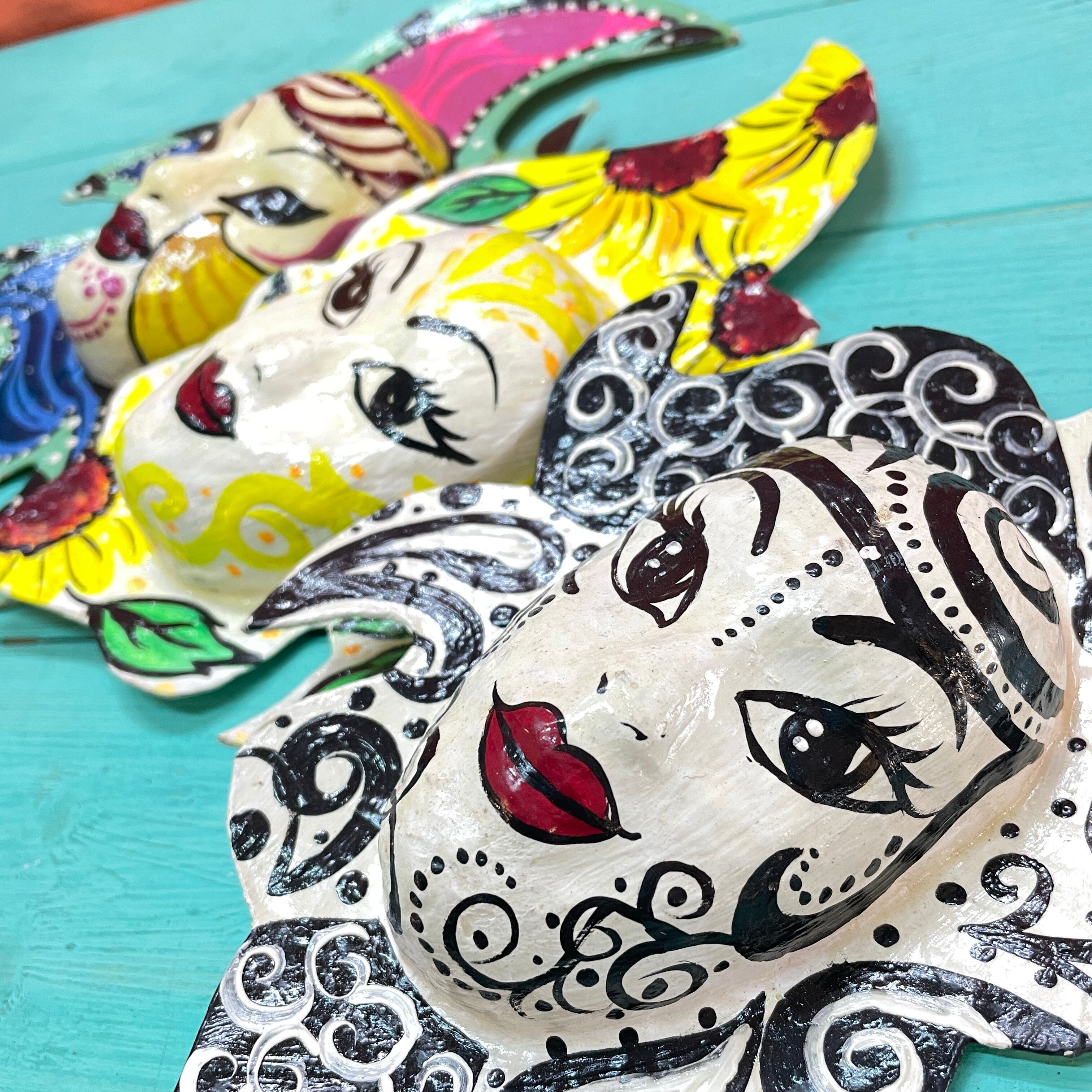 濡らした新聞を鋳型にぎっしりと詰め圧をかけることで型を作り、カラフルで独特な色彩でハンドペイントで仕上げられた、見ているだけで幸せな気分になれる雑貨です。