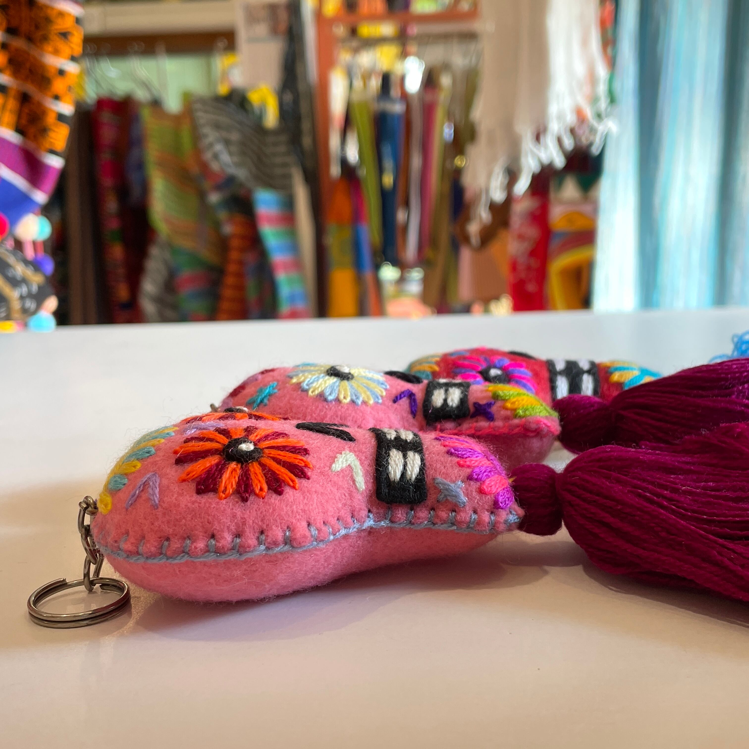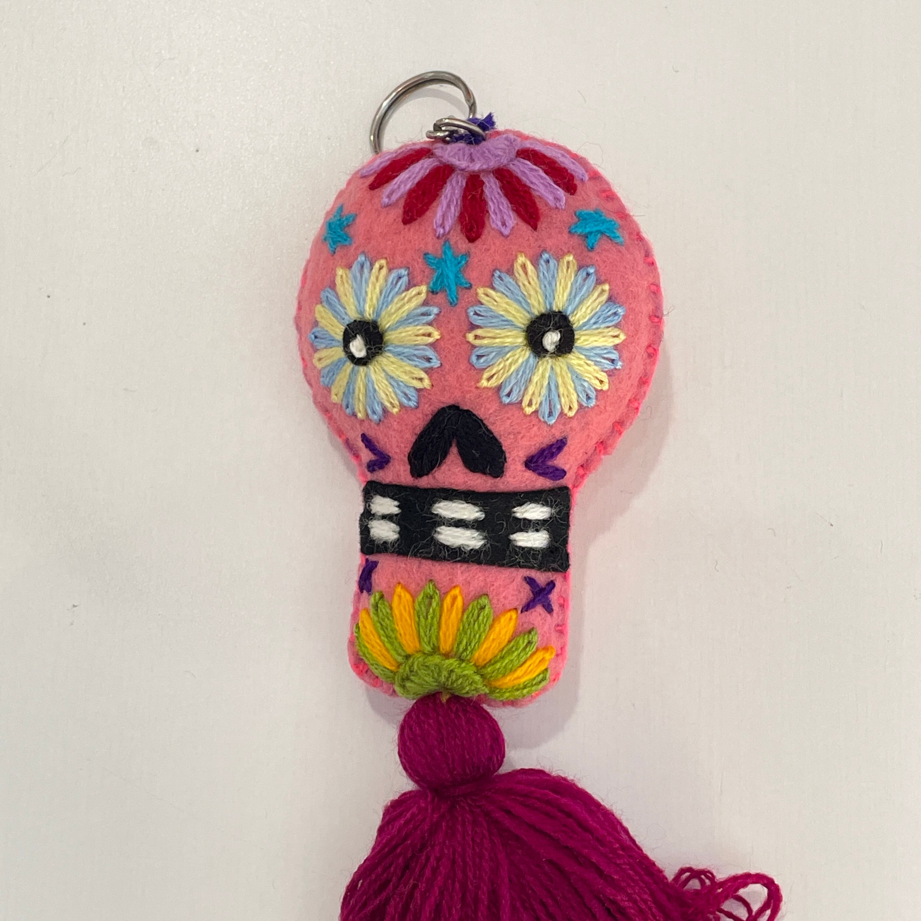 メキシコ・オアハカで作られたフェルトの刺繍カラベラキーホルダー。