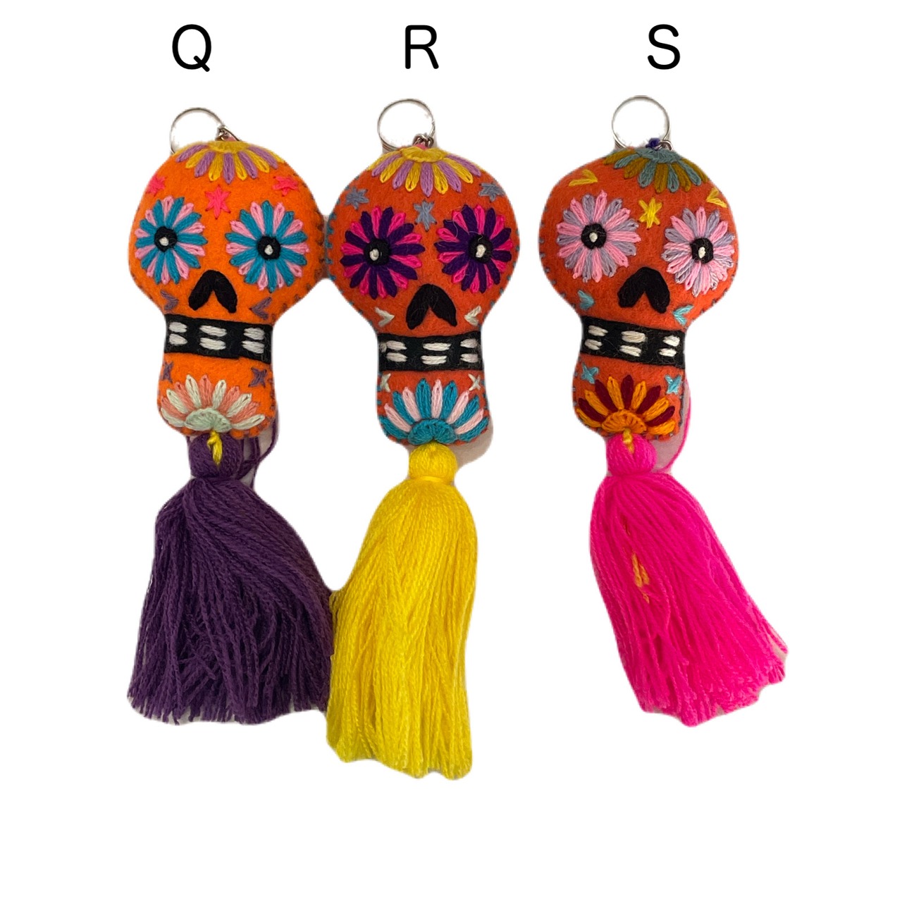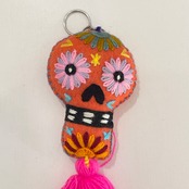 メキシコ・オアハカで作られたフェルトの刺繍カラベラキーホルダー。