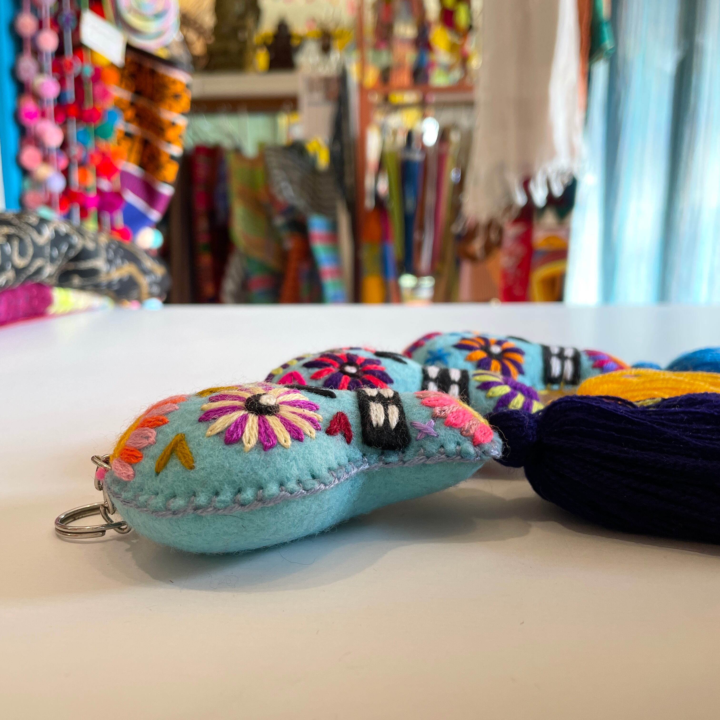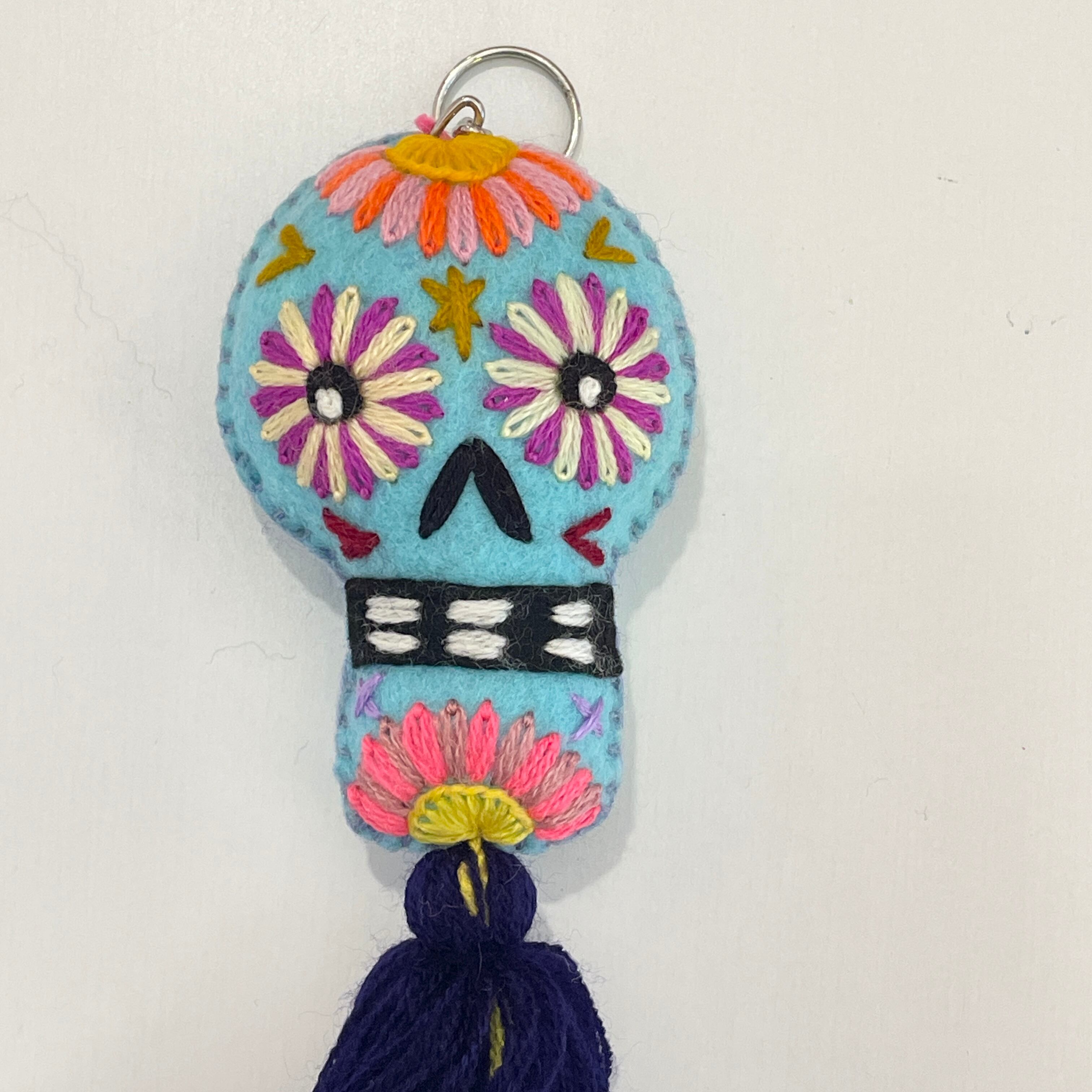 メキシコ・オアハカで作られたフェルトの刺繍カラベラキーホルダー。