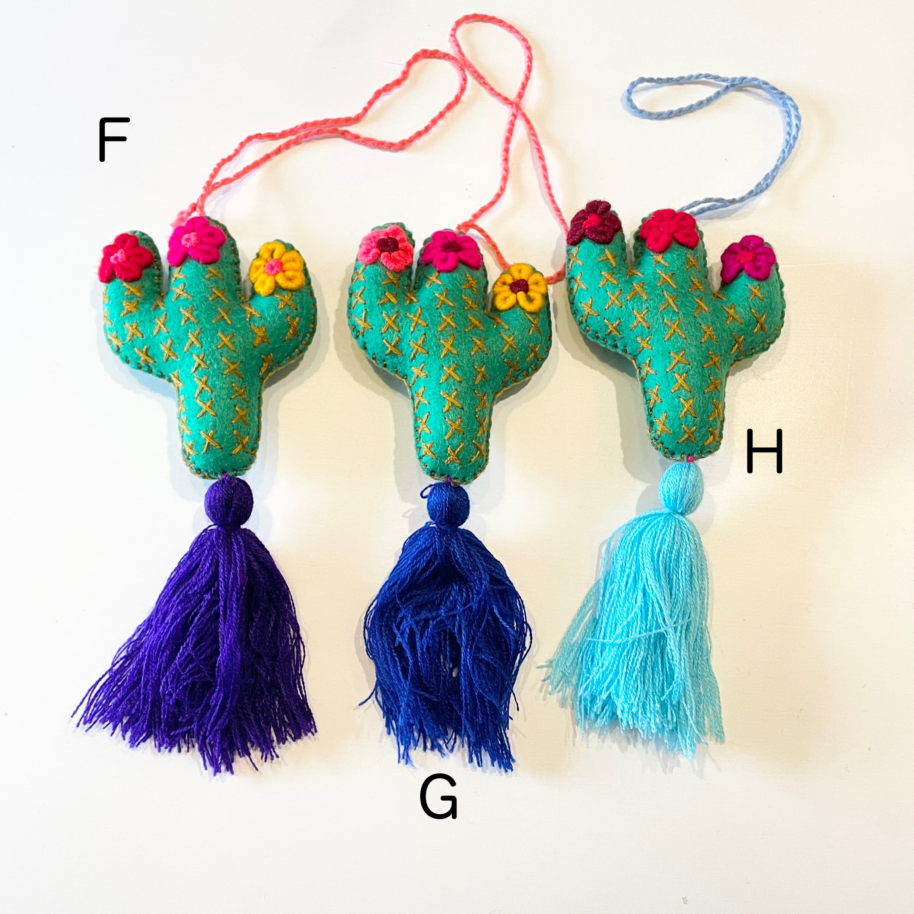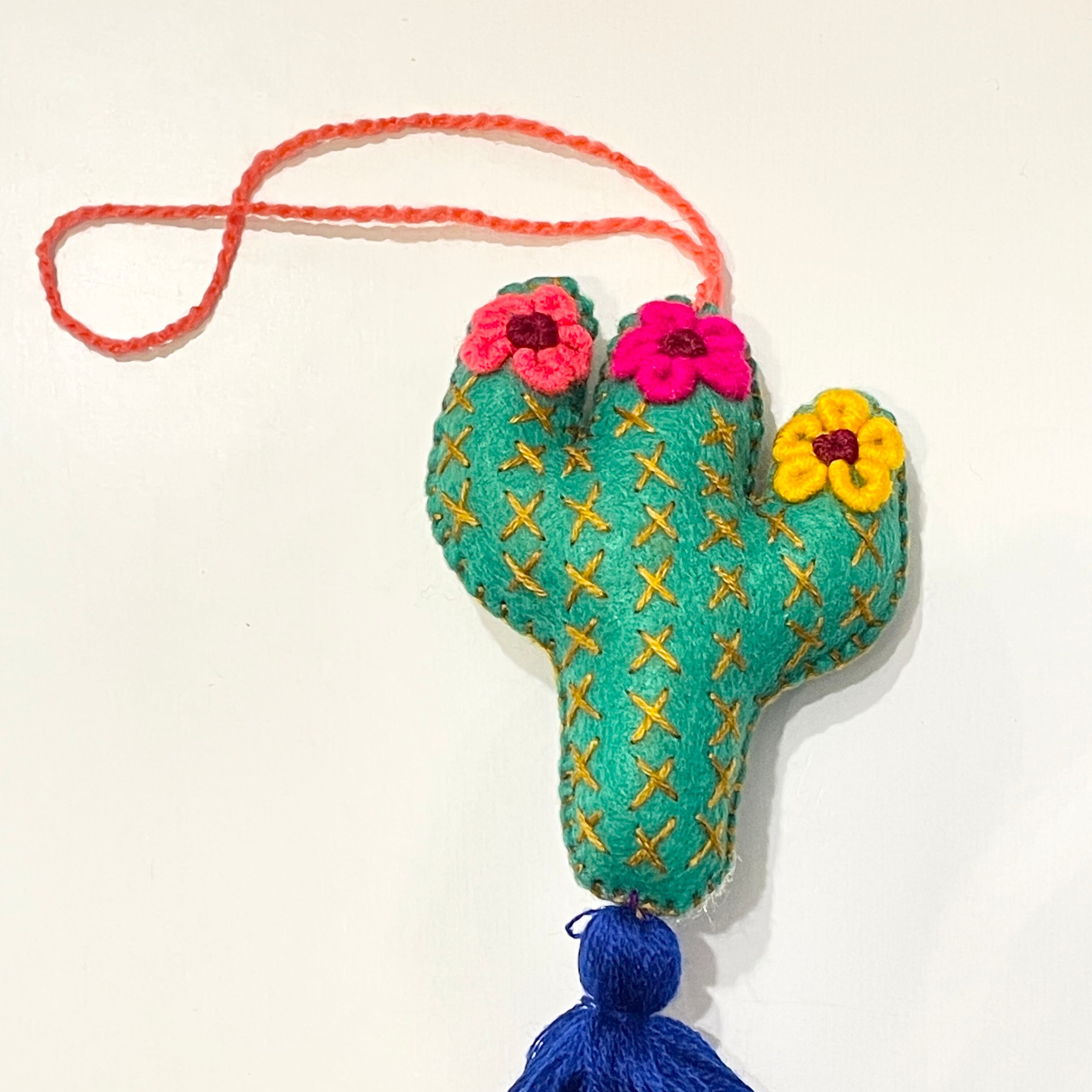 メキシコ・オアハカで作られたフェルトの刺繍サボテンチャーム。