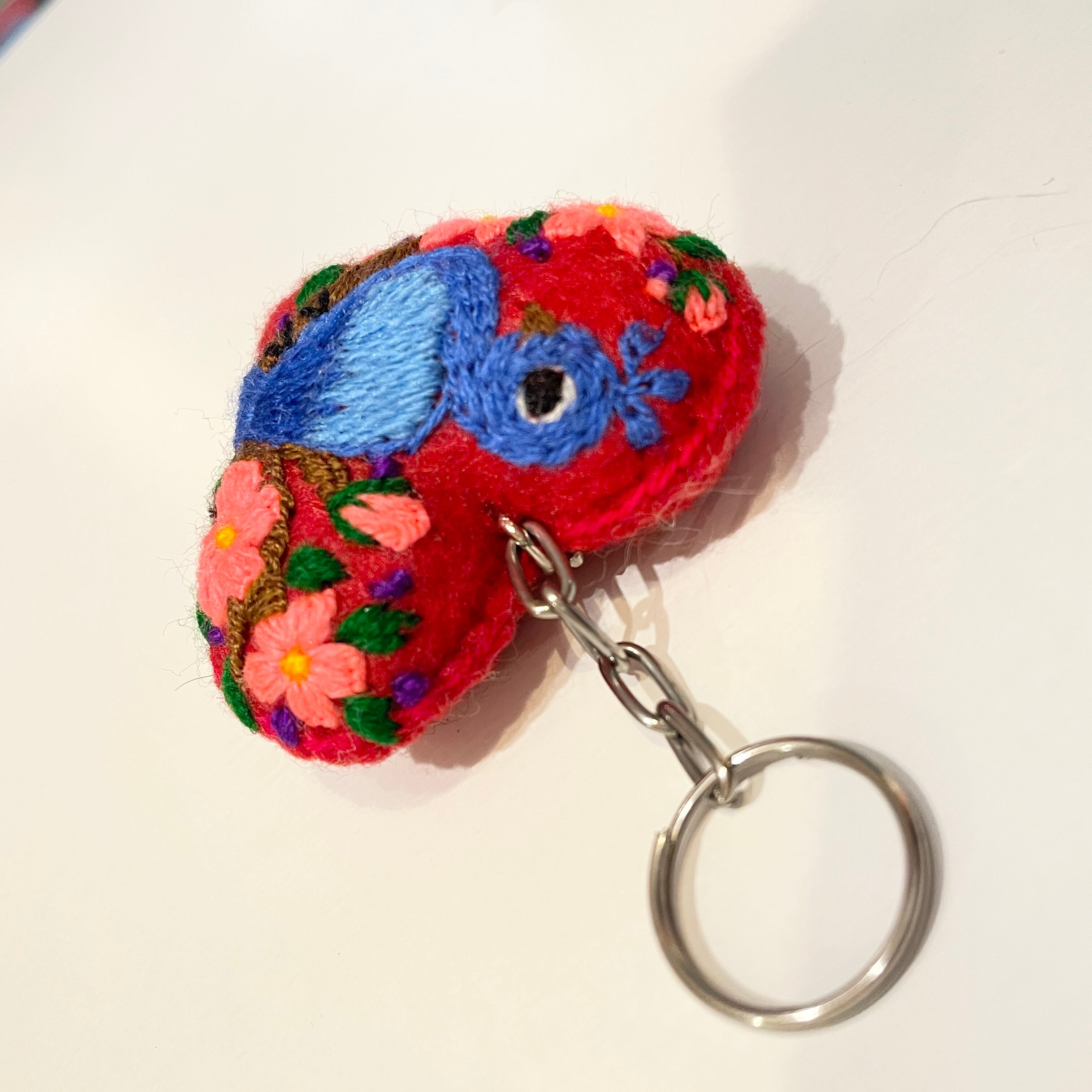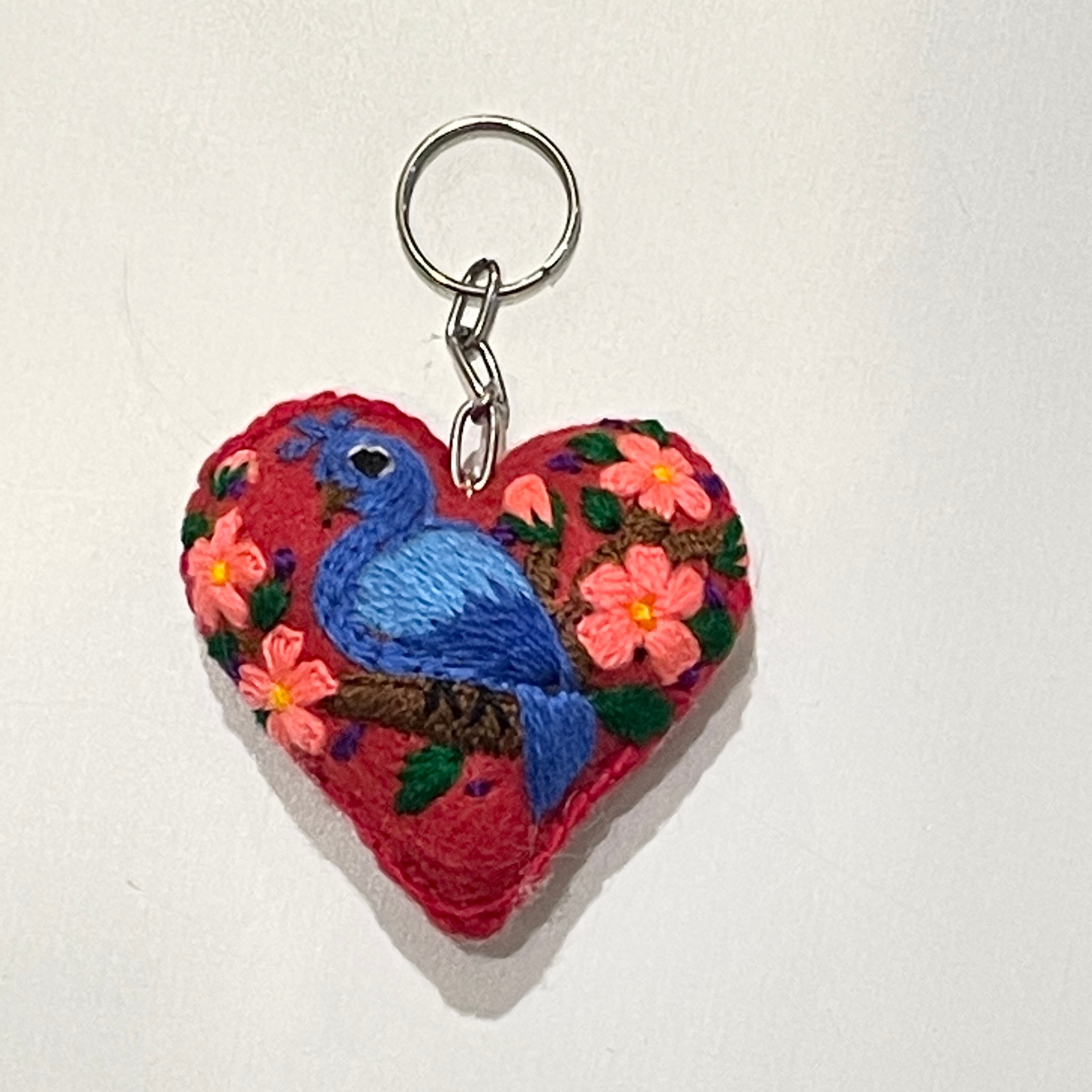 メキシコ・オアハカで作られたフェルトの刺繍ハートキーホルダー。