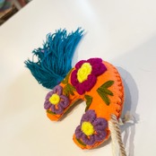 鮮やかな色のフェルト生地で作られた優しいフォルムと、様々な色の糸で刺繍された可愛らしいデザインがなんともたまらない一品です。