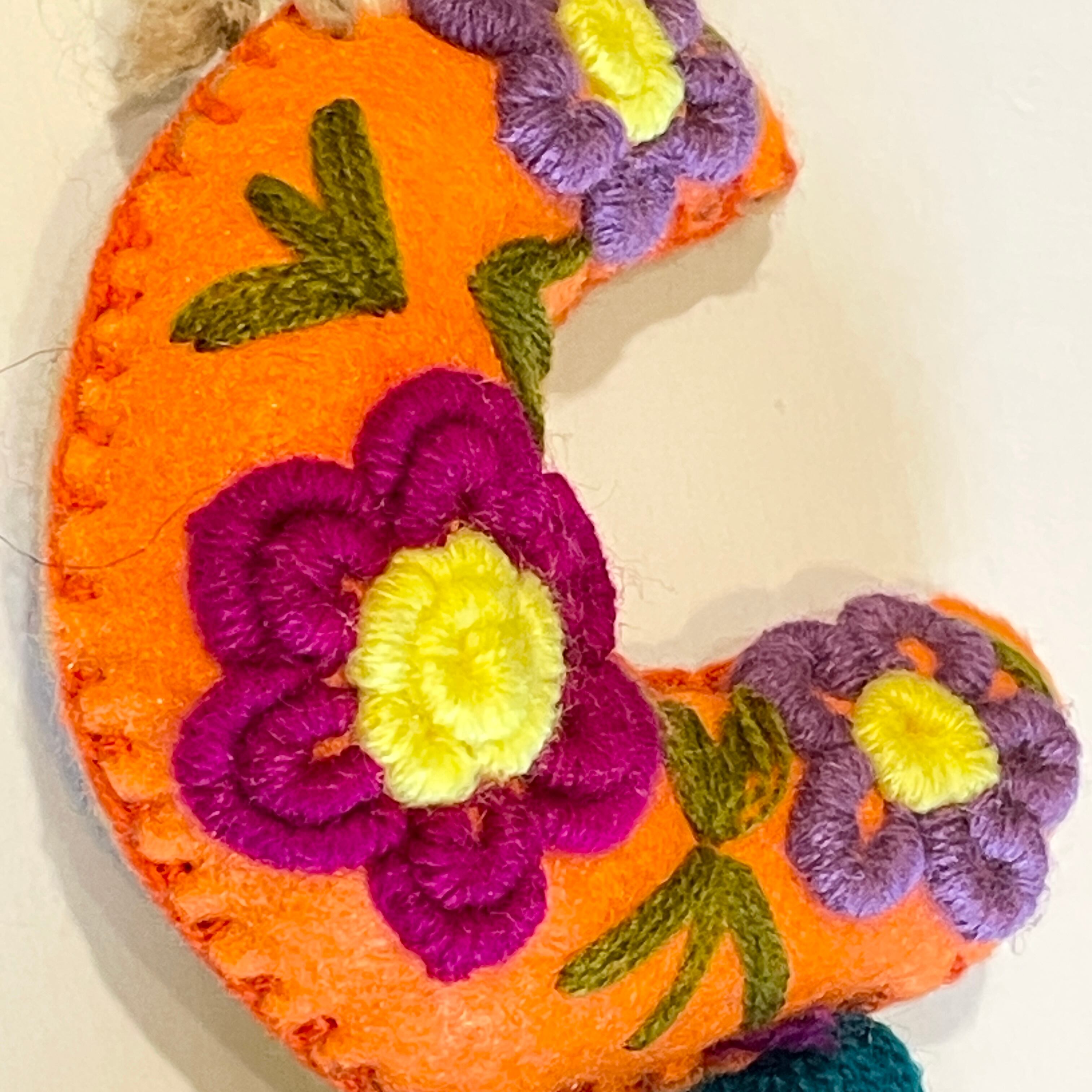 メキシコ・オアハカで作られたフェルトの刺繍月チャーム。