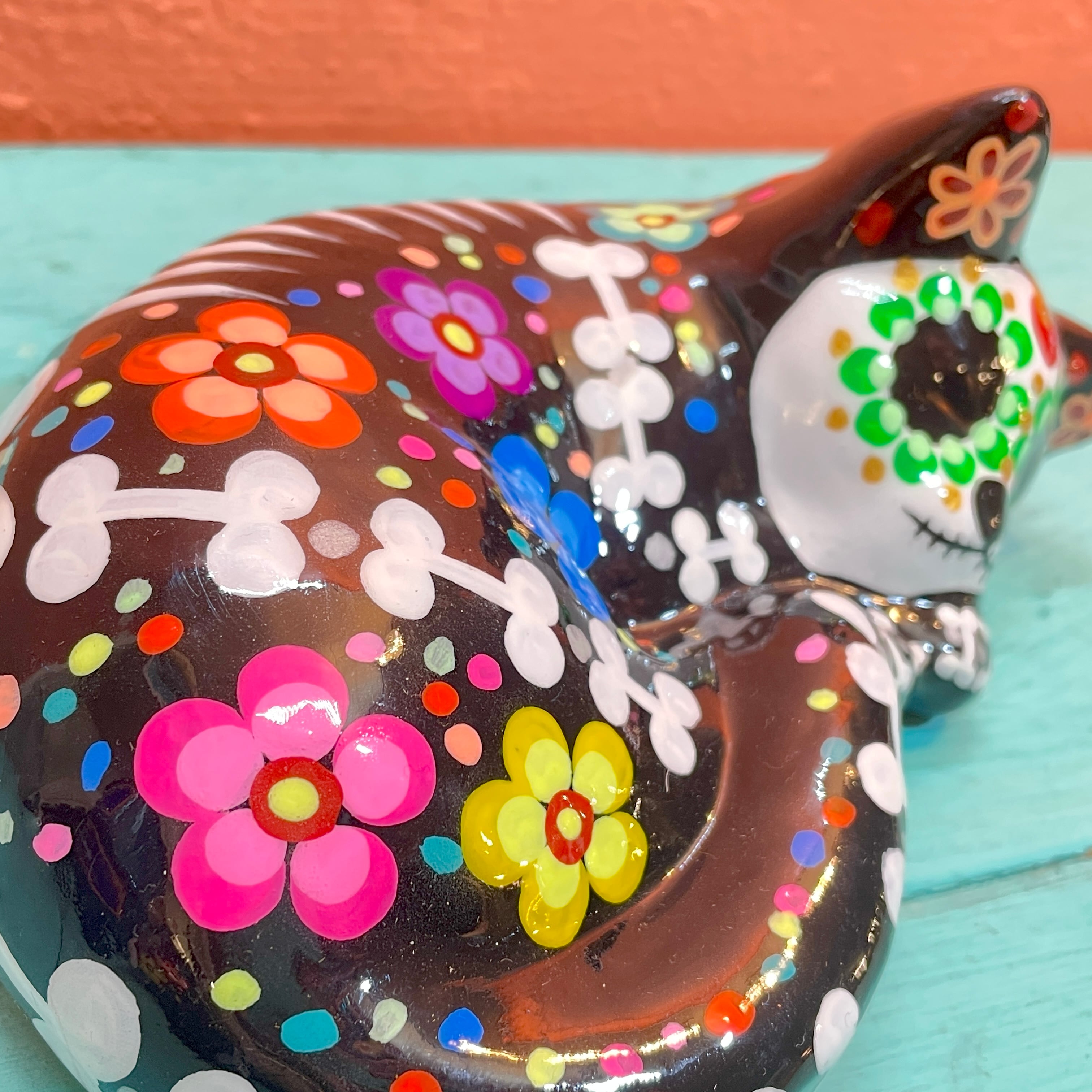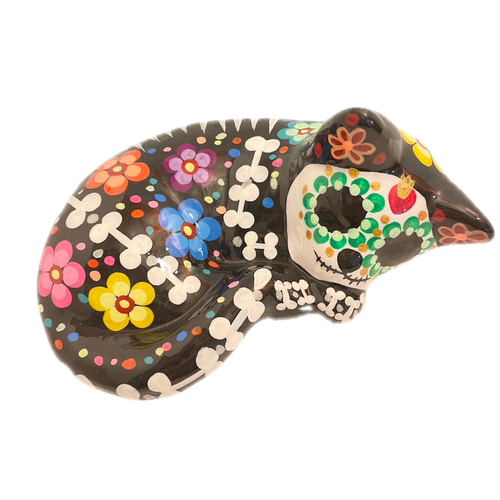 こちらはメキシコではおなじみのモチーフ、骸骨の猫です。