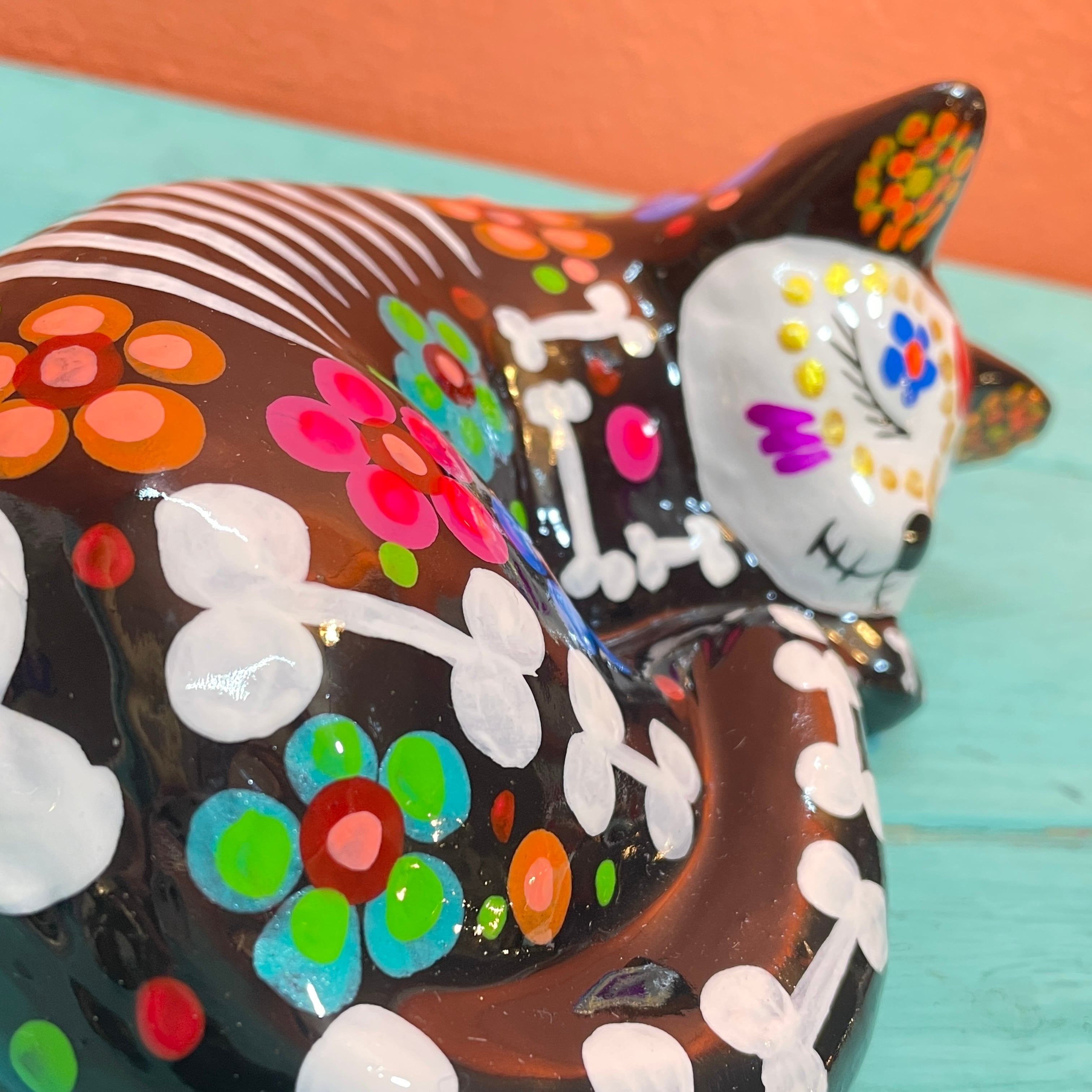 こちらはメキシコではおなじみのモチーフ、骸骨の猫です。