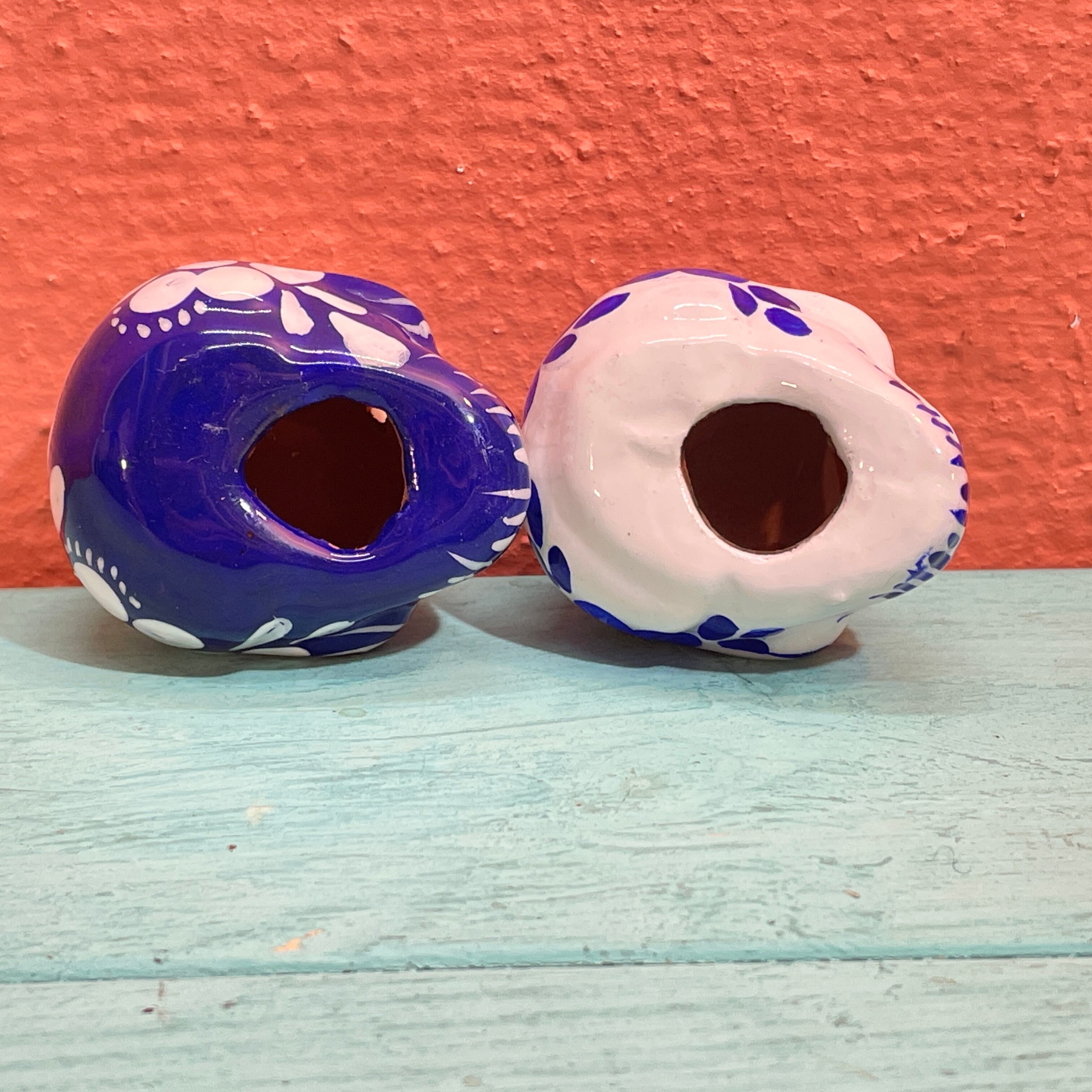 メキシコシティ 陶器のカラベラ アズール 2個セット A Mexico city Calavera de Cerámica