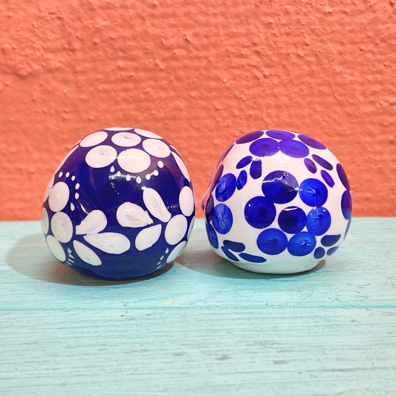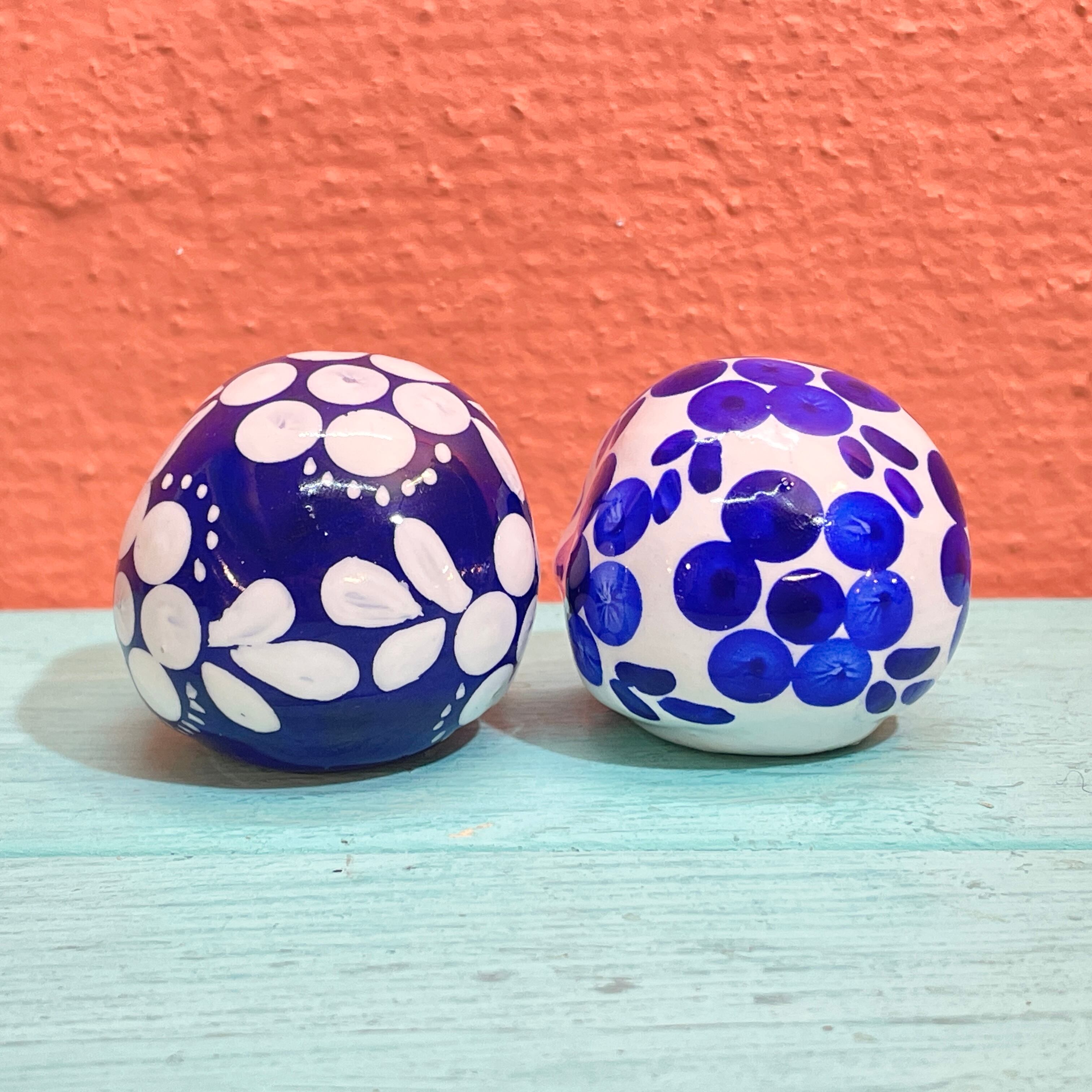 こちらはメキシコの陶器製品でおなじみの青と白の美しい配色のカラベラ2個セットです。