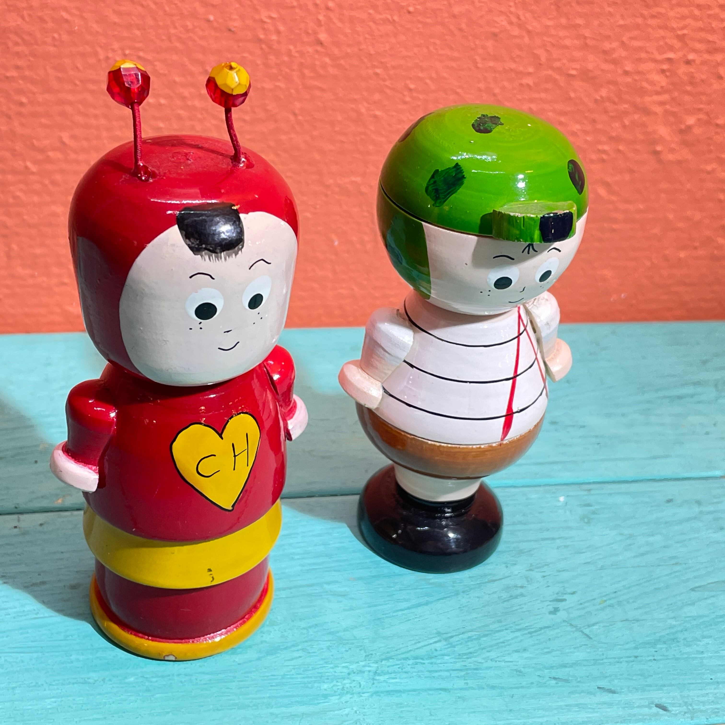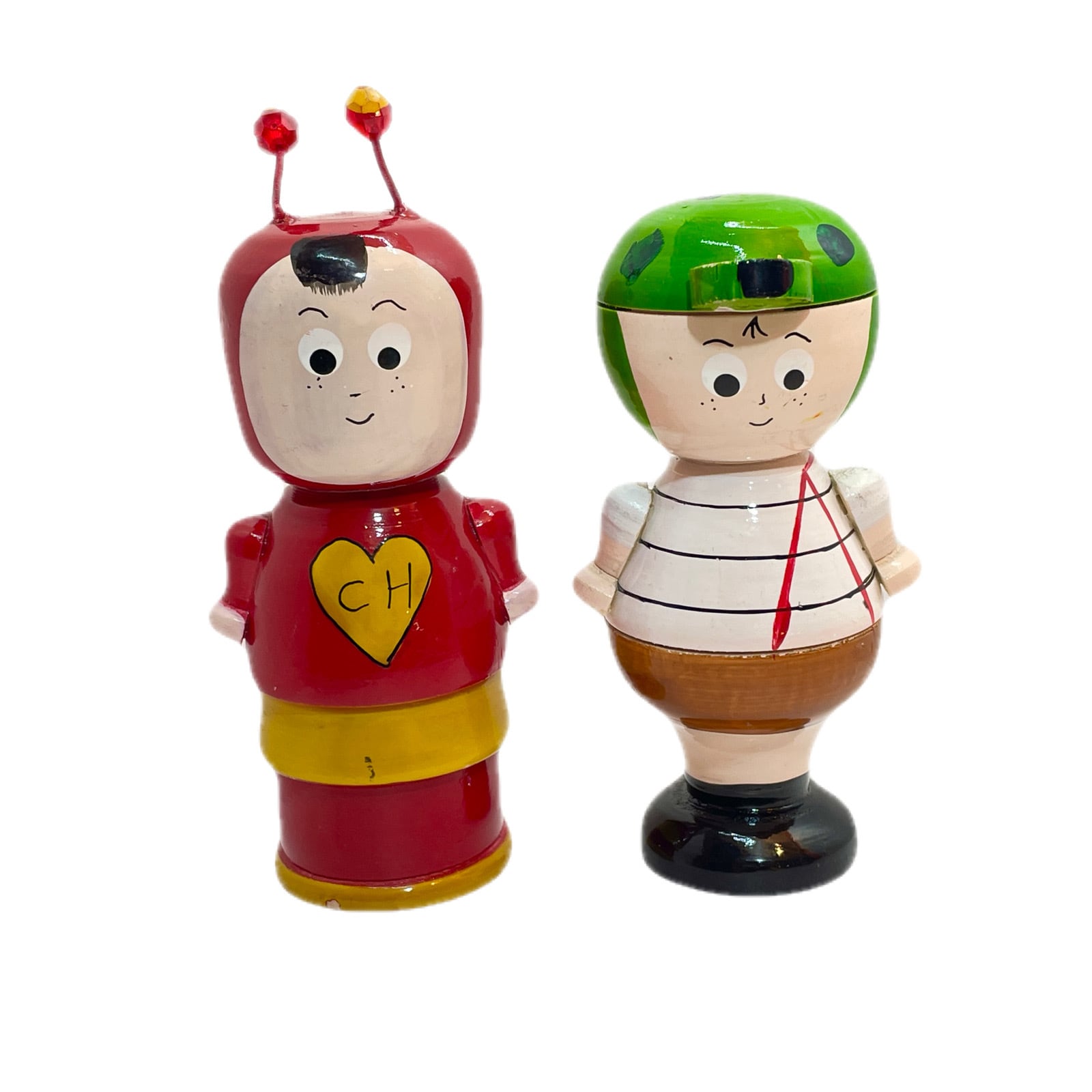 1973年から1980年までメキシコの独立テレビ局とロベルト・ゴメス・ボラーニョによって製作されたメキシコのテレビコメディーシリーズ「エル・チャボ・デル・オチョ」のキャラクター、チャボとチャプリン・コロラドの木製人形。