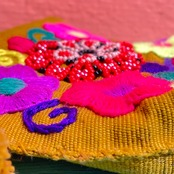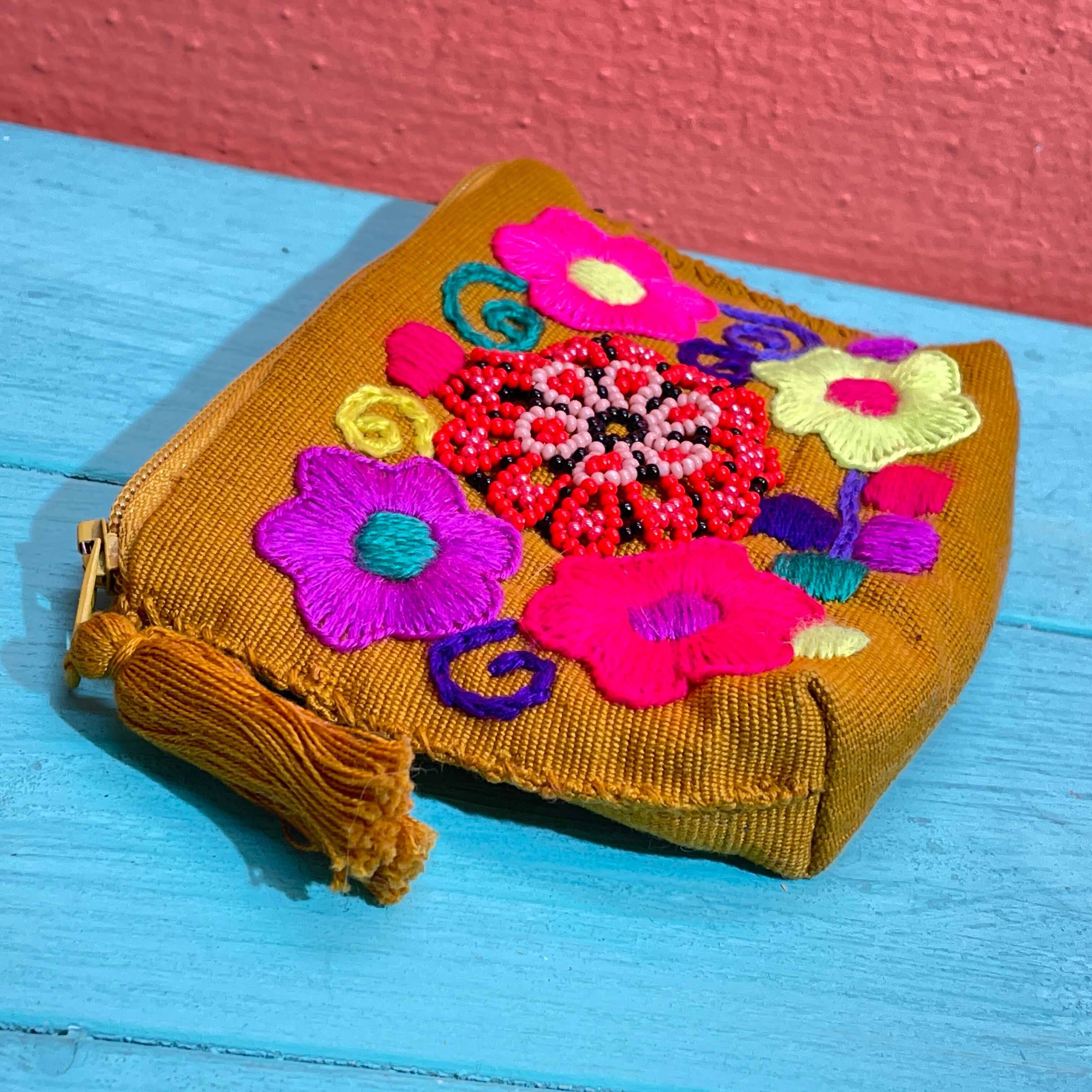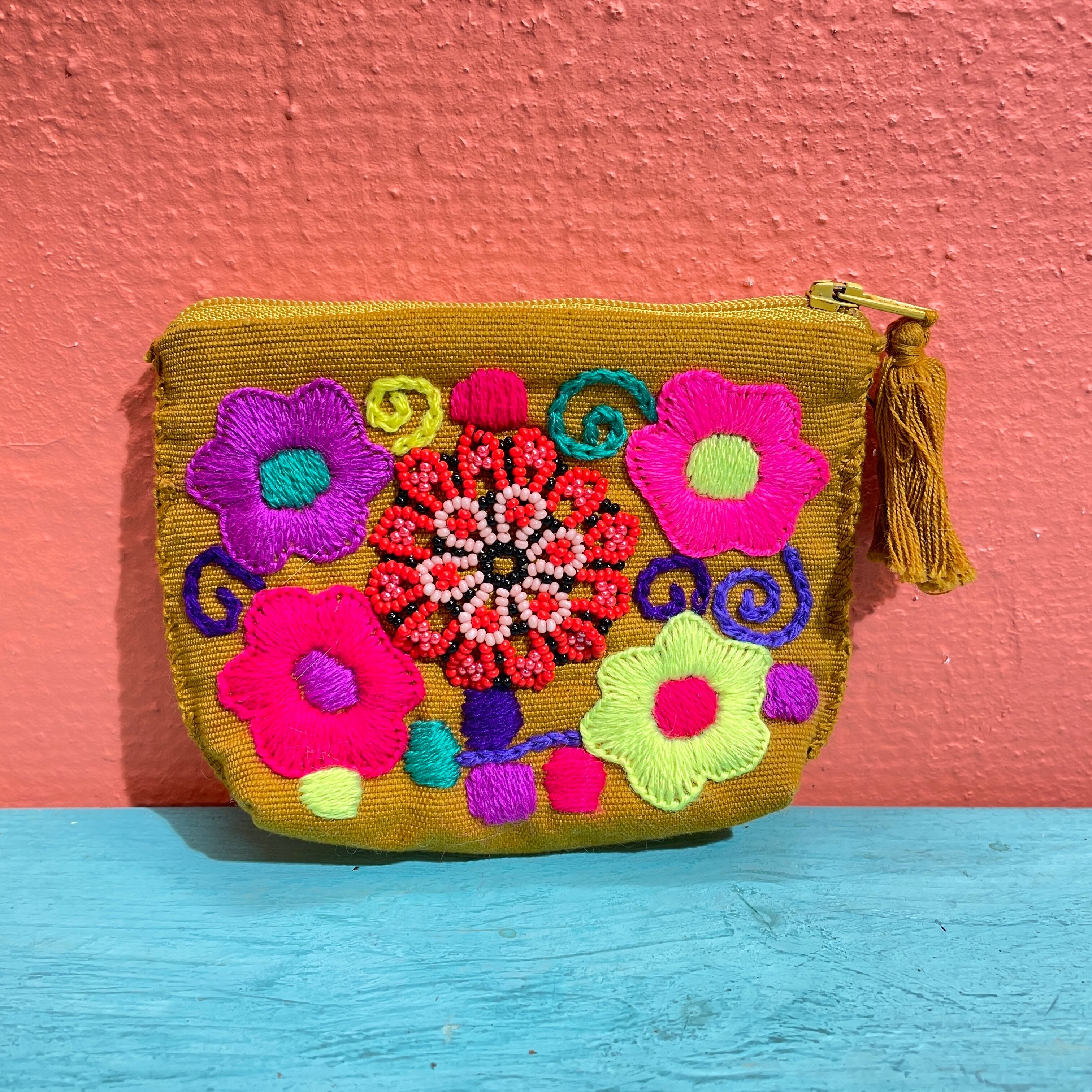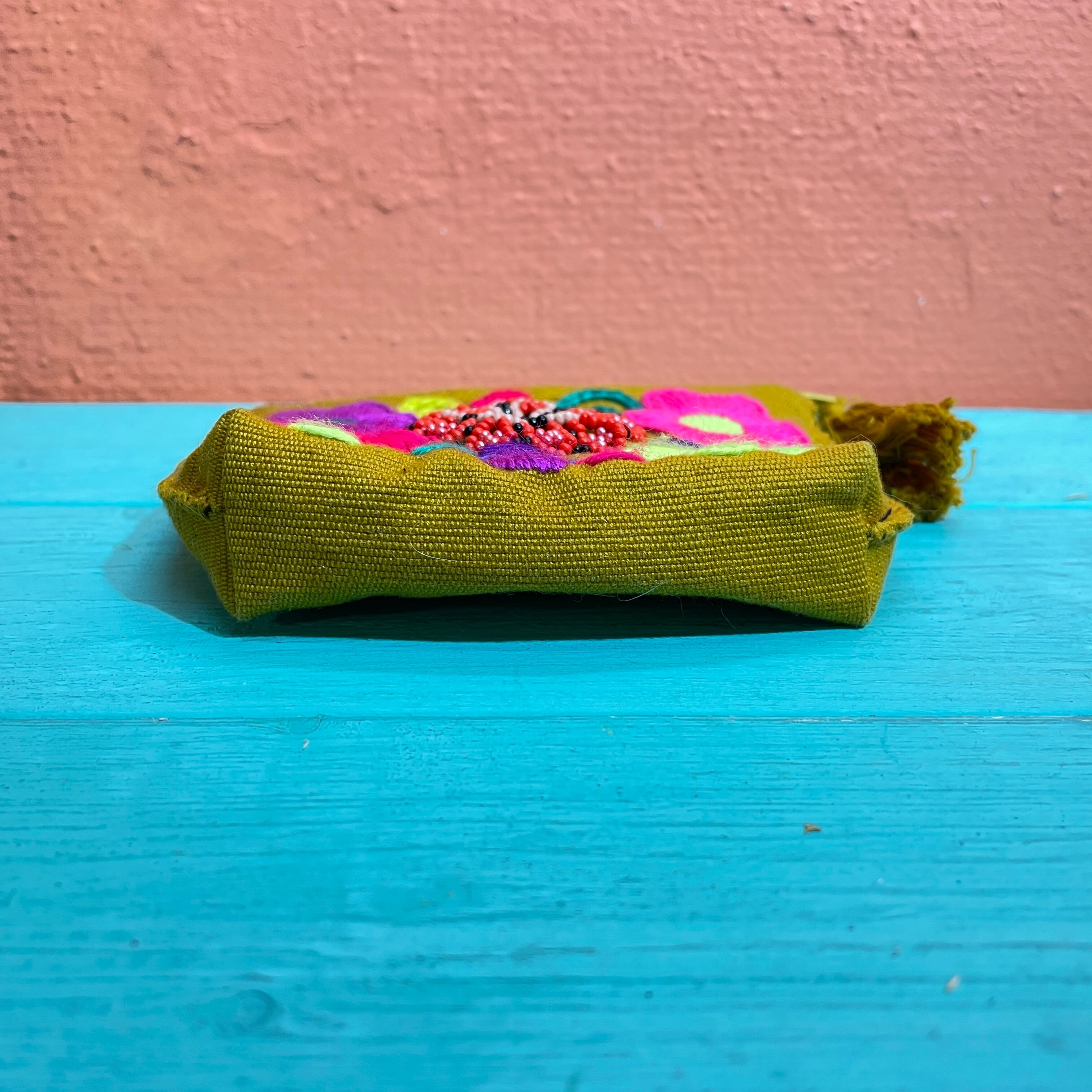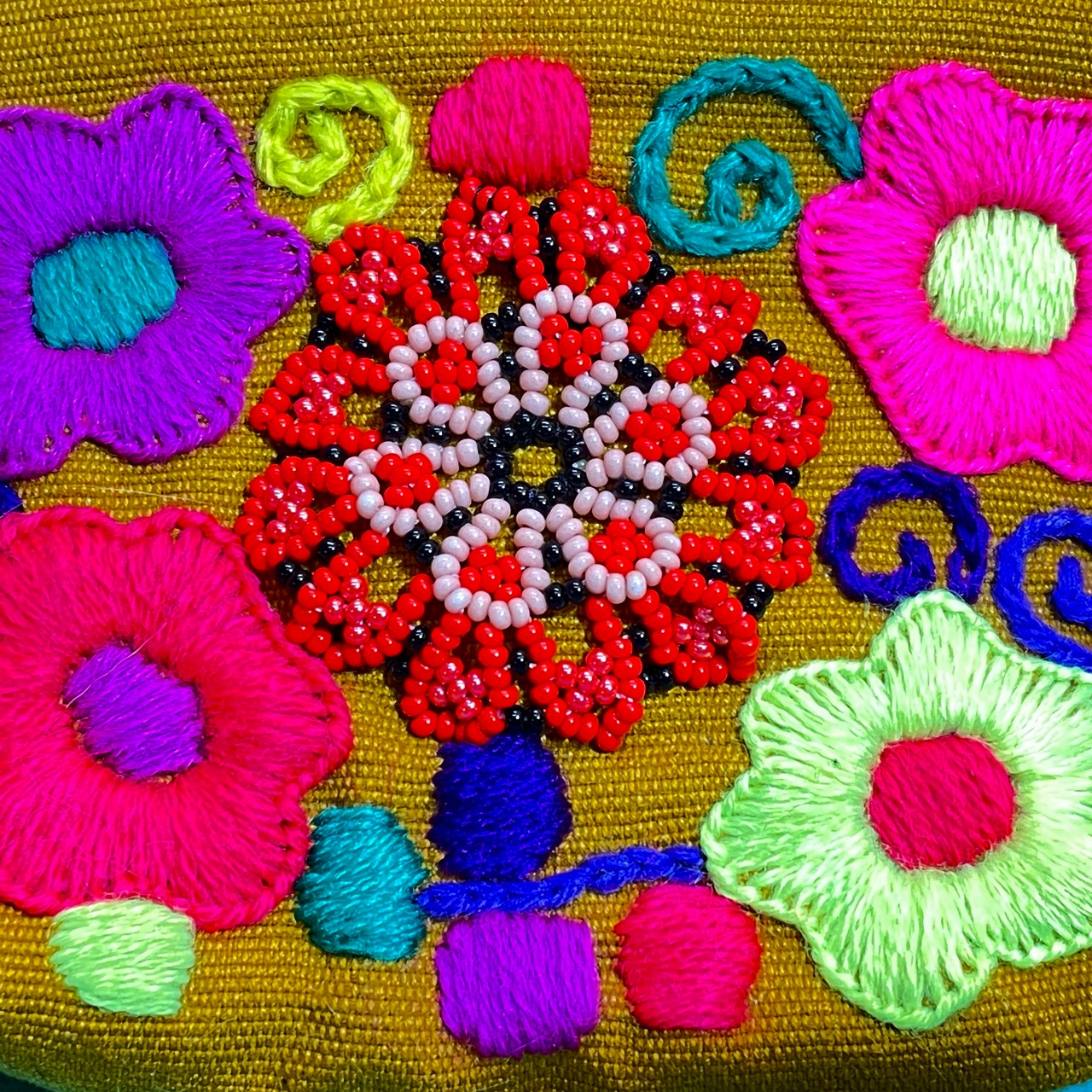 メキシコのビーズを使った刺繍が施されたポーチ。