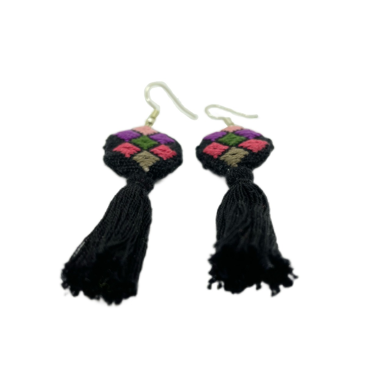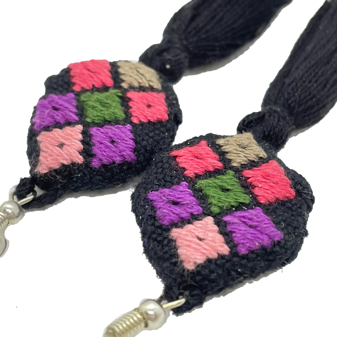 ララインサール村の縫取織ピアス San Andrés Larráinzar Textile Earrings BK A