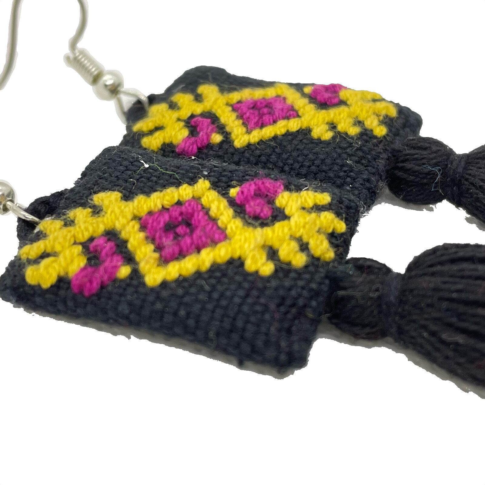 メキシコ、チアパス州のサン・アンドレス・ララインサール村の織物のピアス。