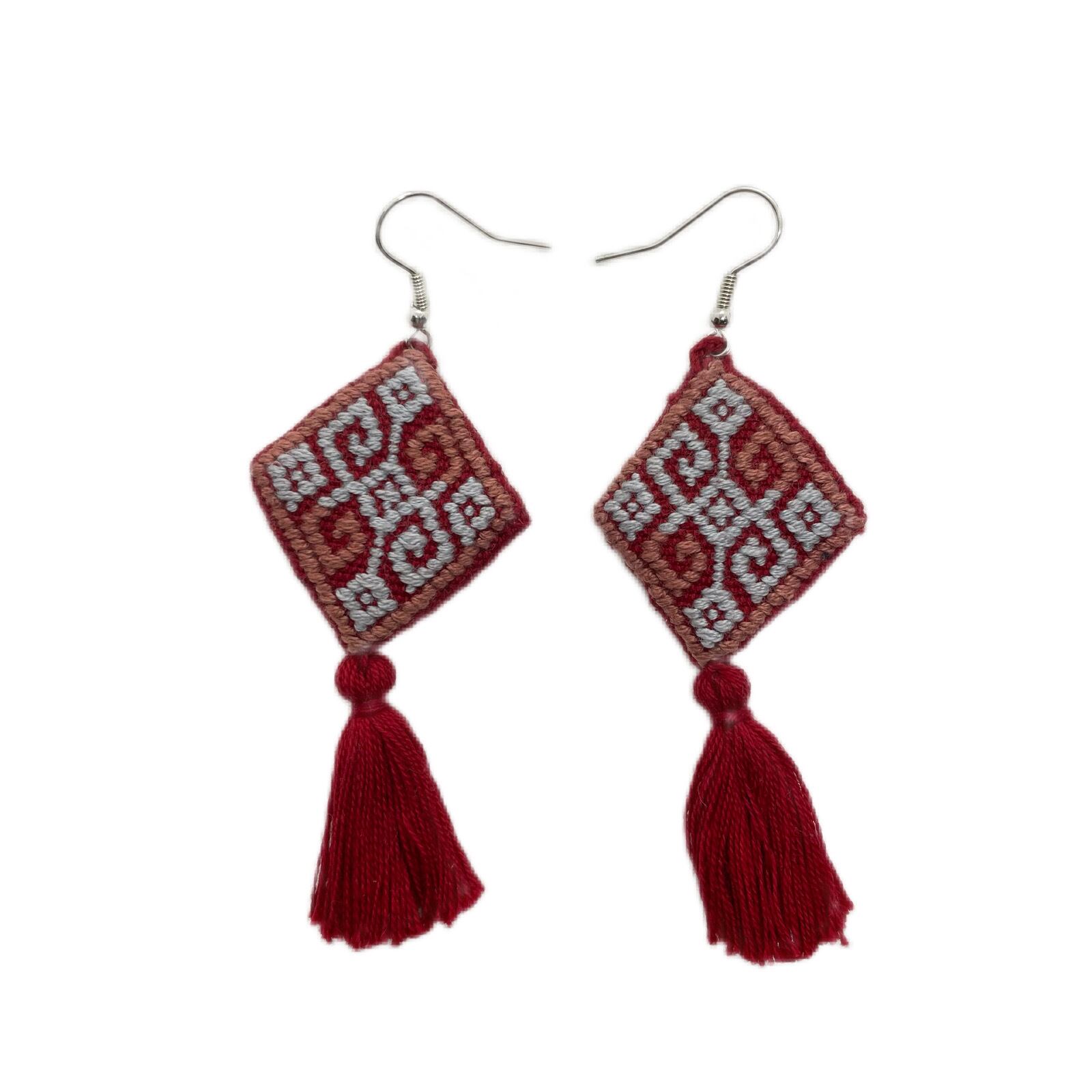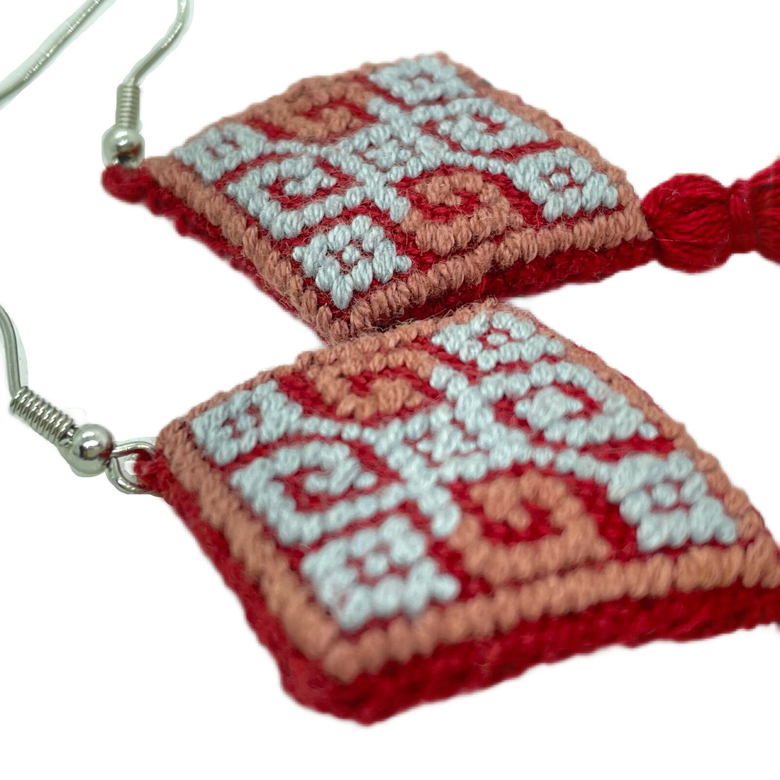 メキシコ、チアパス州のサン・アンドレス・ララインサール村の織物のピアス。