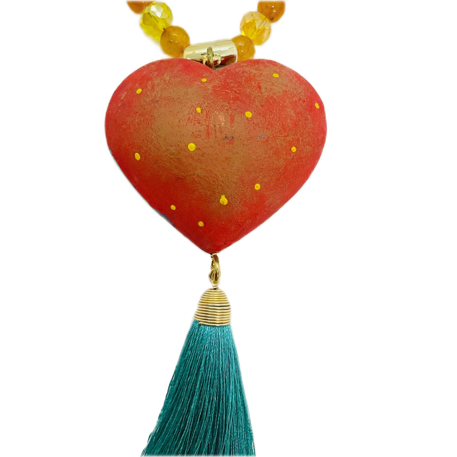 オアハカウッドカービング ハート ネックレス&ピアスのセット Biktor Ugo Oaxaca Wood Carving Heart Necklace&Earrings set E | NOENVANO by ZAPOTECO
