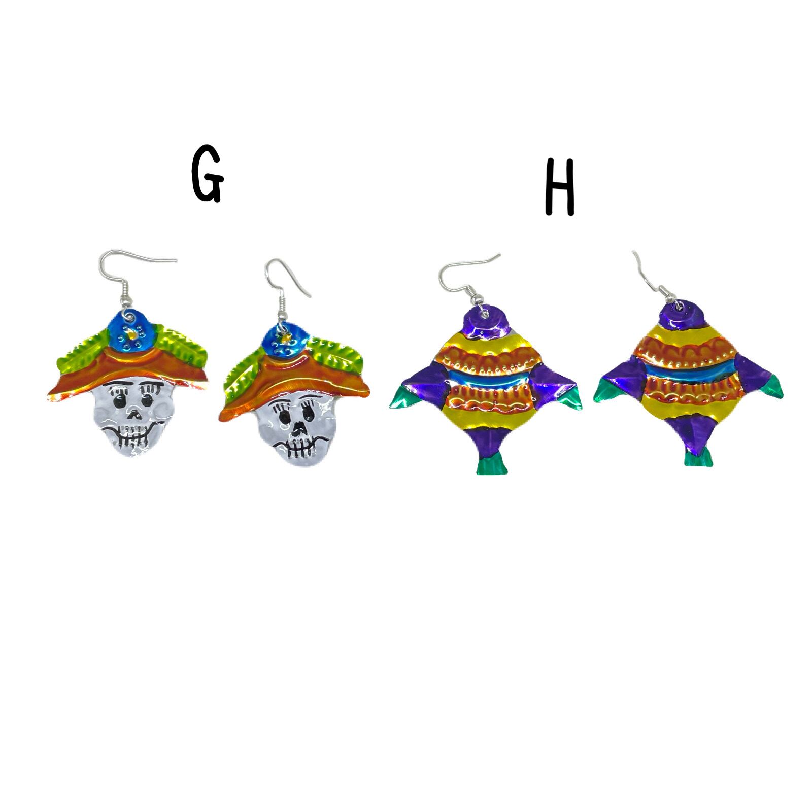 オアハカ州 オハラタのピアス カラベラ・ピニャータ Oaxaca Hojalata Earrings Calavera Piñata YMXOX025G-H | NOENVANO by ZAPOTECO